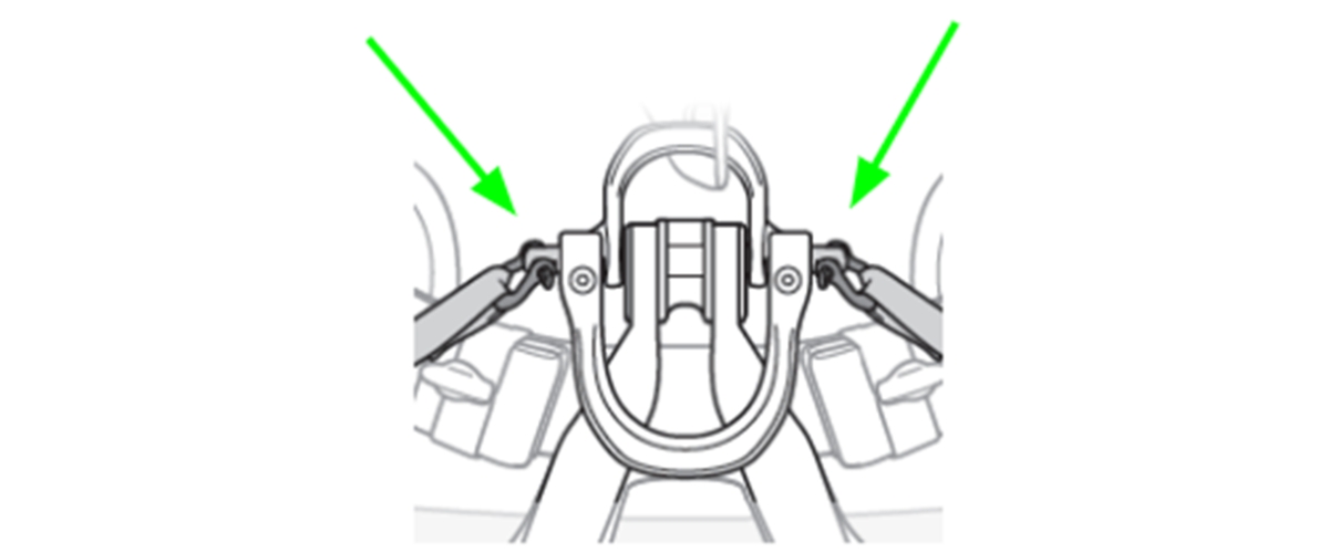 Případ A: Na vašem postroji jsou nainstalovány závlačky (pouze u postrojů ASTRO). Postroj můžete dočasně používat, dokud nebudou díly vyměněny.