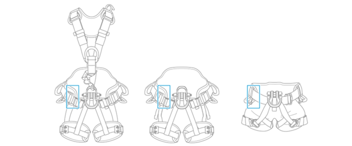 Případ B: Na vašem postroji nejsou nainstalovány žádné pojistné závlačky. Před jakýmkoli použitím postroje proveďte test požadovaný v naší předchozí výzvě k prohlídce, konkrétně: